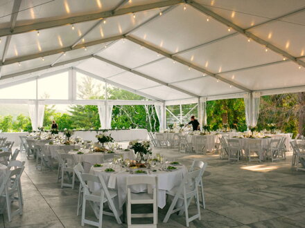 Naše svadobné stany sú vyrobené z pevnej hliníkovej konštrukcie a kvalitných PVC alebo transparentných materiálov. Elegantný dizajn, vysoké stropy a otvorené priestory vytvárajú pocit luxusu a výnimočnosti.